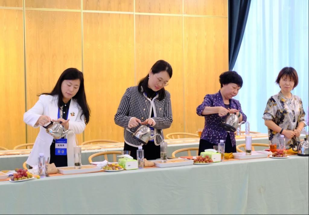 最后,在茶艺师的讲解和带领下,进行了茶文化学习和凤凰三点头茶艺实践体验,专家们在欢快的氛围下交流茶艺体验的心得后结束本次的会议。