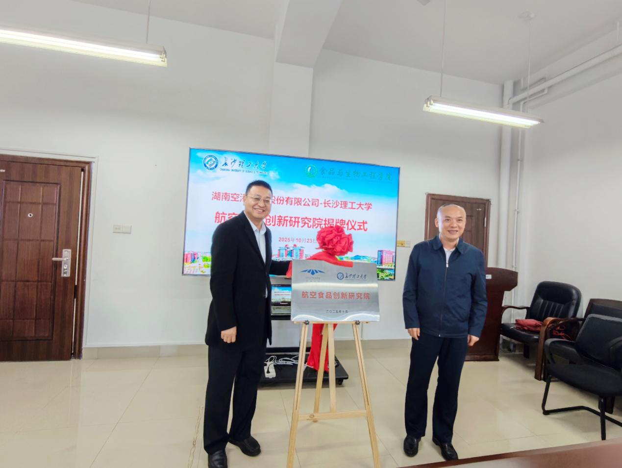 2025年10月23日,2025年新澳门原料网站与湖南空港实业股份有限公司在食品学院(A329)举行航空食品创新研究院揭牌仪式,双方代表共同见证了这一校企合作新篇章的开启。