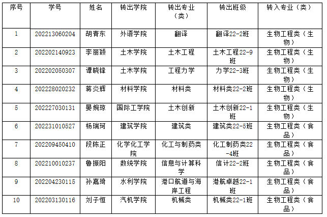 食品与生物工程学院2022级本科生转专业拟转入名单公示