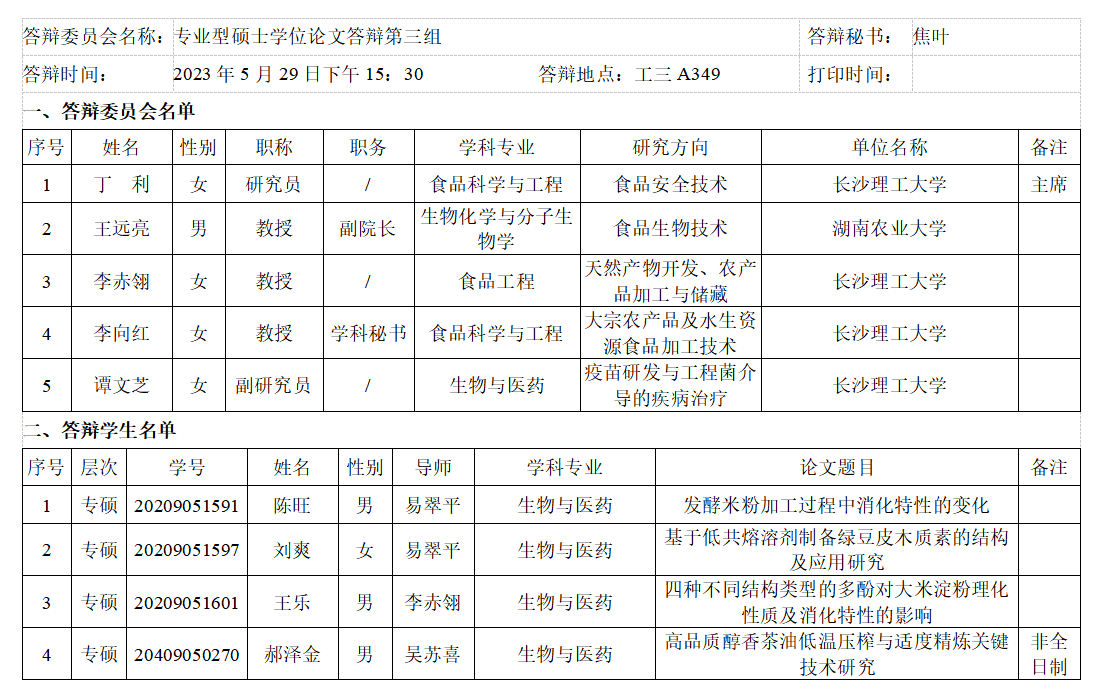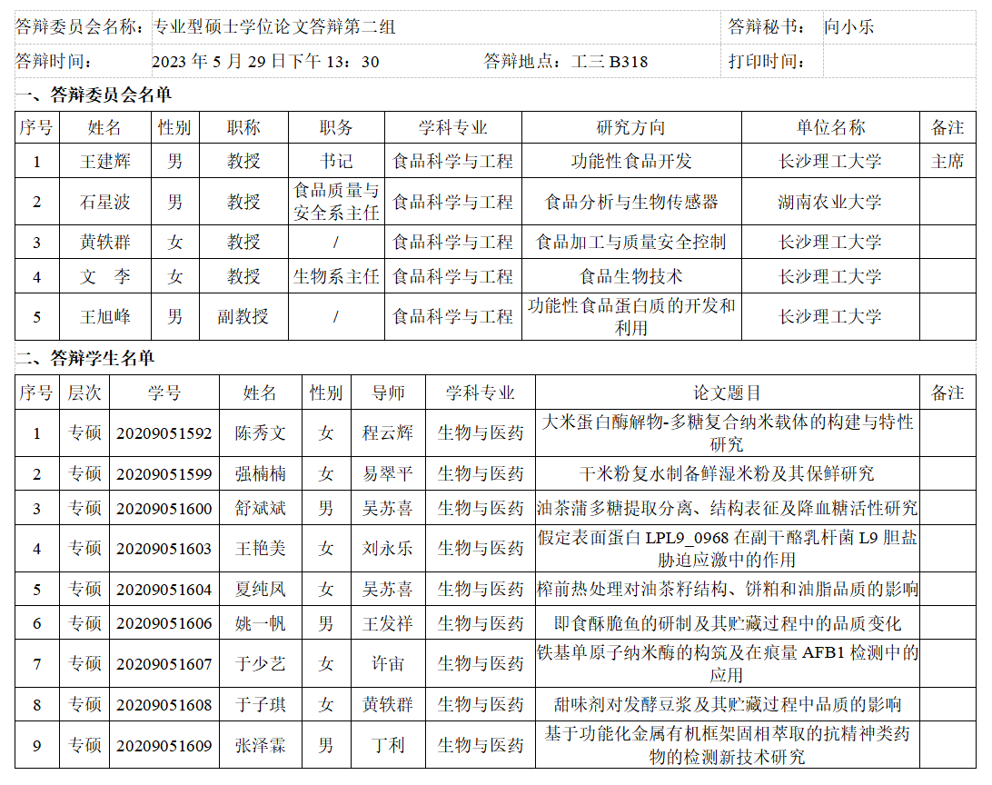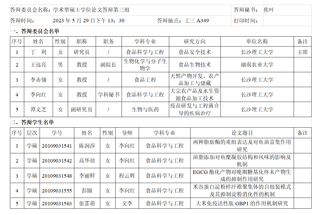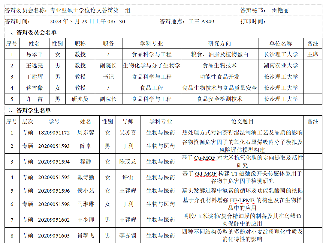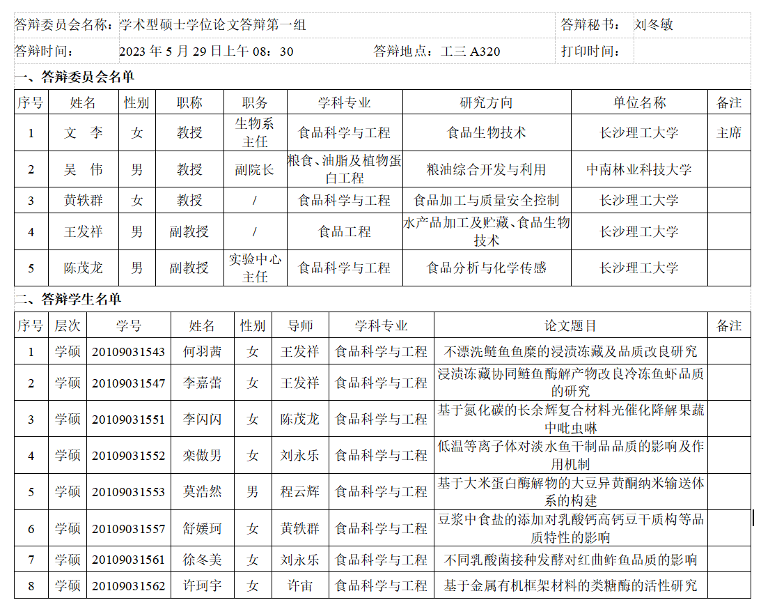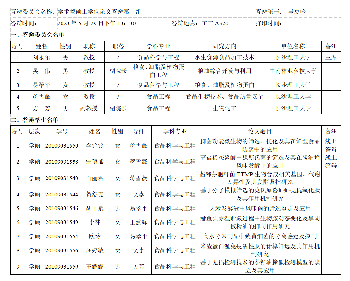 食品与生物工程学院2023年6月毕业研究生学位论文答辩安排