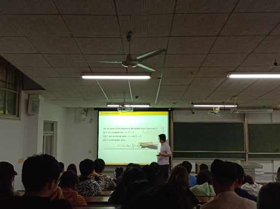 伍老师以Cantor集、Vonkoch曲线、Sierpinski垫等分形集的构造引入分形几何,主要介绍了Hausdorff测度和维数、生成分形集的迭代函数系统、自仿集和自仿测度等基础内容以及分形几何与其他学科的交叉研究之一分形上的调和分析等内容。伍老师就如何学好数学的专业基础课,与同学们进行了深入交流,勉励大家珍惜大好时光,努力学习,立志成才,努力成为新时代中国特色社会主义事业合格建设者和可靠接班人。