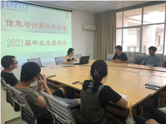 6月10日下午,信息与计算科学专业2021届毕业生座谈会在理科楼A502召开,座谈会由信息与计算科学系支部书记兼副系主任李姣主持,曹蕊、粟钊阳、蔡雅仟、郝文迪、陶维林等16位信计专业的毕业生参加会议。