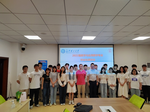 6月16日下午,2022届数学与应用数学专业本科毕业生代表座谈会在云塘校区理科楼A210举行。系主任胡海军、党支部书记郎广名,以及22名毕业生代表参加本次座谈会。