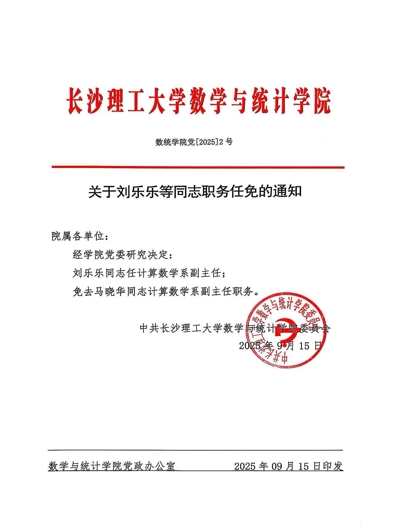 关于刘乐乐等同志职务任免的通知