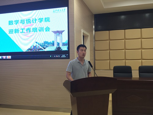 2019年9月2日中午12:30,数学与统计学院在云塘校区理科楼A200召开数统学院迎新工作培训会,数学与统计学院党委副书记马丽,18级辅导员柳映堂和19级辅导员崔培东出席此次会议,全体参与迎新的志愿者、下班党员、下班干部及学生会成员与会。