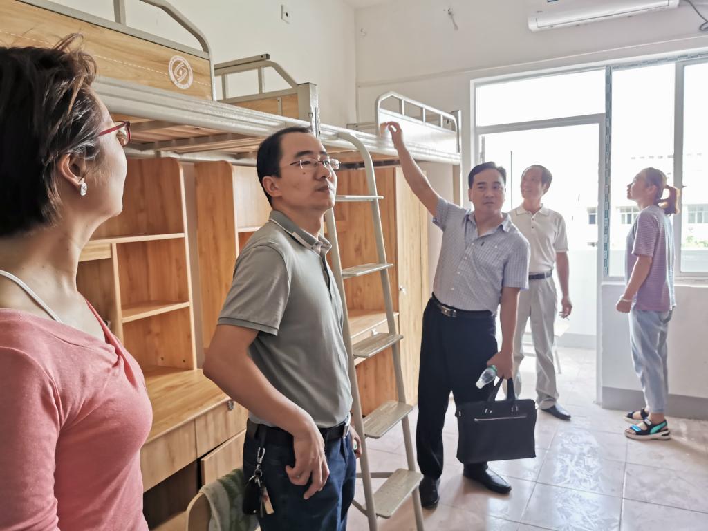 学院高度重视新生入学报到工作,数学与统计学院党委书记张宏伟、院长黄创霞、党委副书记马丽、副院长仝青山、龚红仿、王佳伏、李景等一行来到金盆岭校区,深入学院迎新工作现场以及19级研究生新生寝室,对迎新工作做出进一步指导。