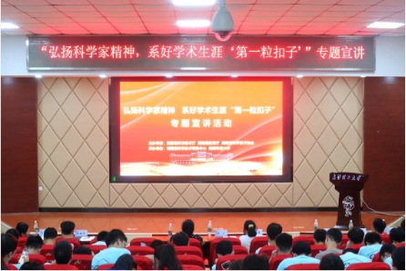 湖南科技大学万步炎做了题为《弘扬科学家精神,矢志报国勇攀高峰》的宣讲。在宣讲活动上,他从爱国、创新、求实、奉献、协同、育人六点出发,深入阐述科学家精神的丰富内涵。此外,他还向同学们分享自身的科研经历,激励青年学子为国奉献。