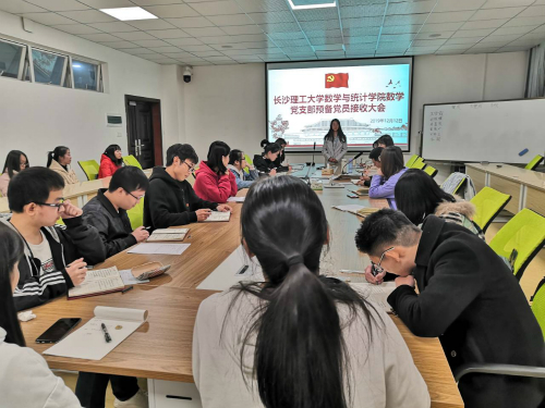 2019年12月12日,数学与统计学院学生党支部在理科楼召开预备党员接收会议,会议由各支部副书记主持,全体党员参加此次会议。