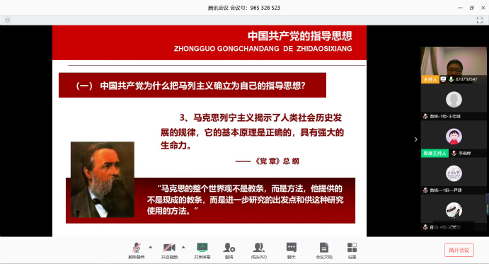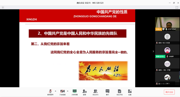 2020年4月16日晚,数学与统计学院、能源与动力工程学院联合培训班组织开展了第11期发展对象培训班《党的性质、宗旨与指导思想》理论课程教学,能动学院党委副书记靳攀科担任主讲人。