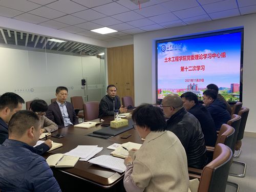 11月29日,土木工程学院党委理论学习中心组开展2021年度第12次集中学习,专题学习党的十九届六中全会精神和湖南省第十二次党代会精神。党委副书记黄阿明、副院长付果、尹平保领学,院党委中心组全体成员参加学习。党委书记江河主持会议。