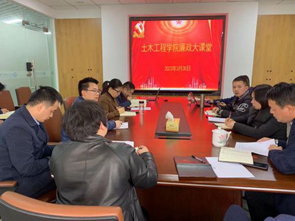 为深入学习贯彻落实党的二十大和二十届中央纪委二次全会精神,坚定不移全面从严治党、从严治院,3月30日下午,在学院会议室,土木工程学院2023年首期廉政大课堂开讲,学院副处级专职组织员柳翼主讲,院党委书记江河,院党委副书记黄阿明,党务主任干事、党建辅导员和全体教工、学生党支部书记20余人参加学习。