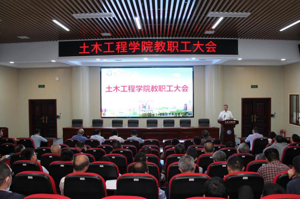 4月18日下午,土木学院召开全体教职工大会,传达学校学习贯彻习近平新时代中国特色社会主义思想主题教育动员大会精神。大会由副院长张永杰主持,学院班子成员及全体教职工参加了会议。