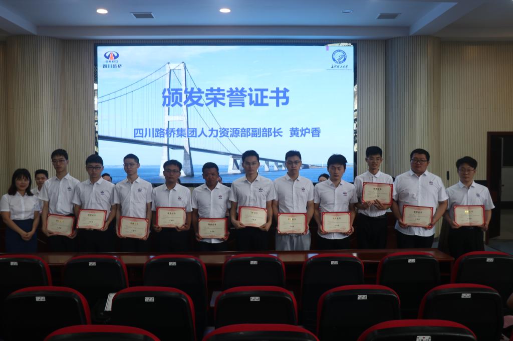 刘衍毅、余佩霓分别宣读第四届“管理培训生”联培班结业名单和获奖学金名单,李娜、黄炉香为联培班学员分别颁发结业证书、荣誉证书。作为优秀学员代表,岩土1801班学生唐恭禧在发言中表示:要不负学校及四川路桥的精心培养,胸怀报国之志、远大理想,以“祖国至上、人民为先、事业为重”的使命与担当,谱写新时代奋斗篇章。最后,全体与会人员合影留念。
