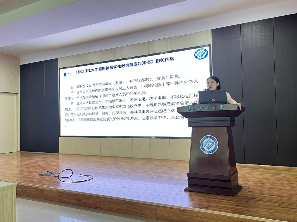 紧接着,董治佑、龙承运分别就暑期留校安全工作进行了补充说明,要求所有同学听从学校、学院指挥,认真履行留校期间健康打卡、晚点名等有关制度,共筑校园安全稳定。