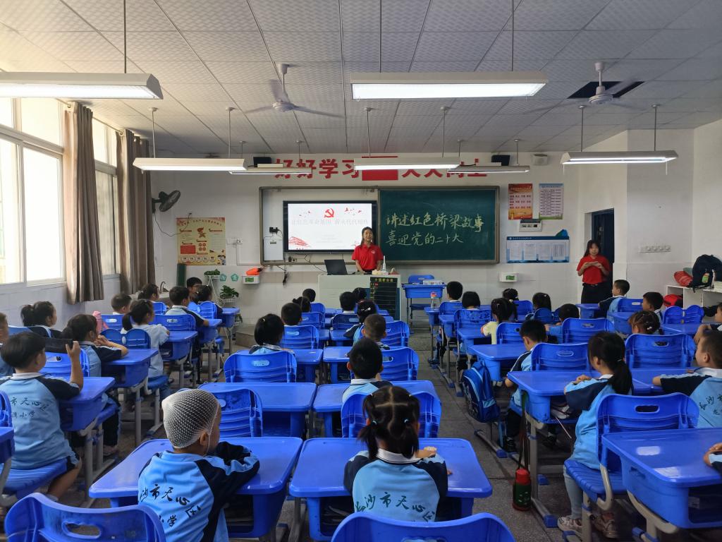 红色桥梁故事进校园,红色精神深入人心。在宣讲会结束之际,天心区龙湾小学一年级11班班主任赵老师不禁感叹,“红色教育要从娃娃抓起。通过这次的红色桥梁故事宣讲,同学们心中已经种下了一颗蕴含红色基因的种子,接下来我们要做的就是继续加强红色教育,让这颗种子长成参天大树。在党的二十大即将召开之际,红色教育正当其时!”