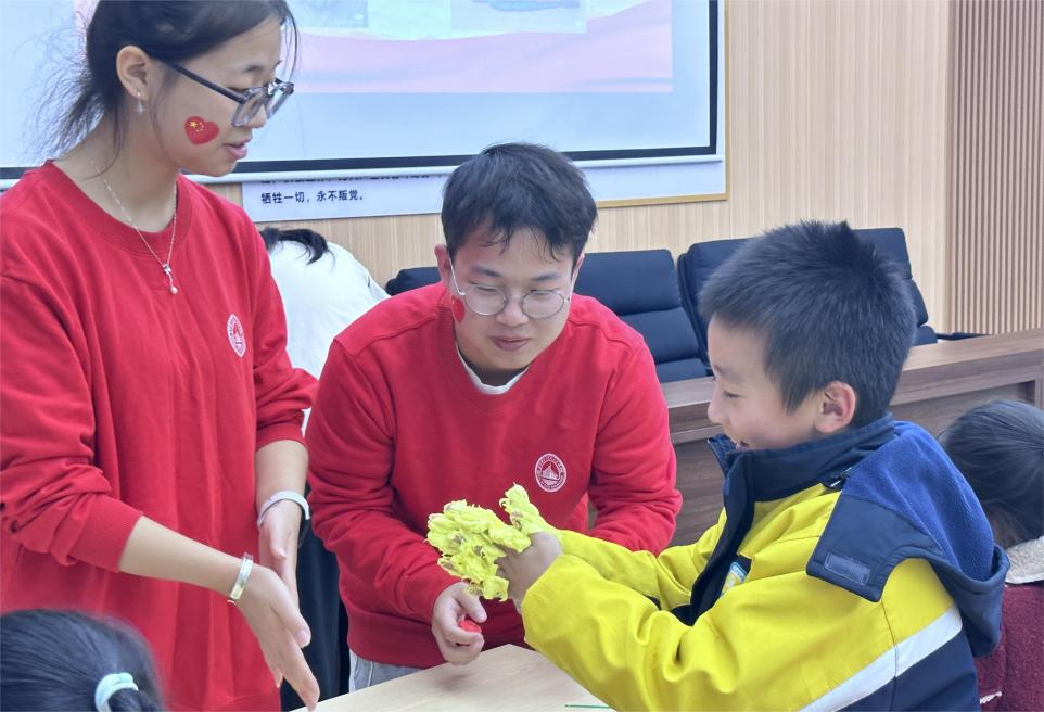 为了让同学们切实体会桥梁的魅力,领悟奋发向上的创新精神,宣讲团成员们给每位同学分发粘土,指导他们制作出心中理想的桥梁模型,通过寓教于乐,引导小学生们感受背后蕴藏的红色精神。最后,凌宣讲团成员云鹏带领着全体同学齐唱《我爱北京天安门》,在同学们爽朗的歌声和坚定的眼神中,此次宣讲活动落下帷幕。
