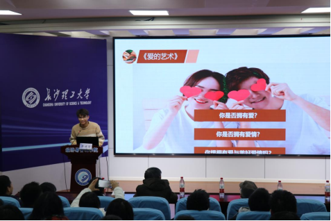 土木学院工力2102班费建望分享了《爱的艺术》一书。费建望从“爱是一种艺术吗?”、“爱的理论”、“爱的实践”三个方面讲述了自己对于爱情的见解。他认为:成为对的人,才会真正获得持久的爱;共同努力,共同成长,却不互相依赖。