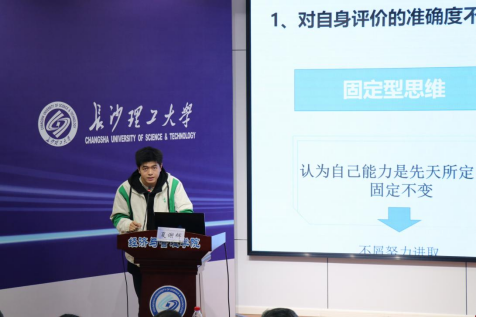 土木学院智建2202班夏谢辉以“如何培养成长型思维模式”为主题,分享了《终身成长》一书。夏谢辉从固定型思维和成长型思维的不同表现、在不同领域的体现两个方面展开分享。他指出成长性思维模式需要培养终身成长思维、自我挑战和不断保持学习。