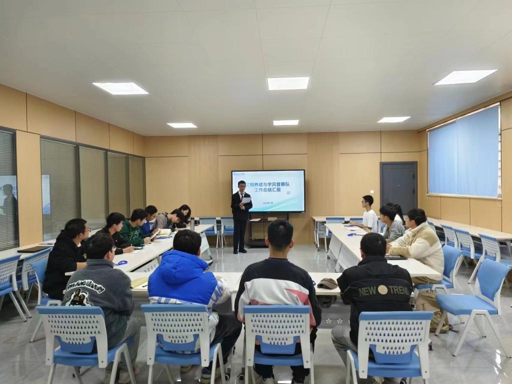 为总结工作经验、加强团队凝聚力, 1月3日下午,土木工程学院学生文明养成与学风督查队于弘三一站式自习室举行工作总结会议。土木工程学院学工办文岚出席本次会议,文明养成与学风督查队各组组长、副组长及部分组员参加会议。本次会议由日常管理组成员何琦主持。