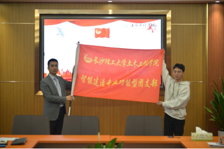 最后,马亚飞为智能建造功能型团支部授旗,并勉励同学们加强社会实践,把日常学习、科研与“互联网+”“挑战杯”等科创赛事紧密联系在一起,真正做到把论文写在祖国的大地上。