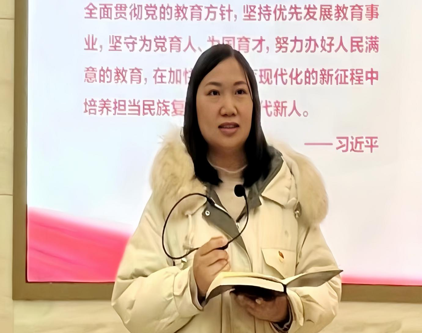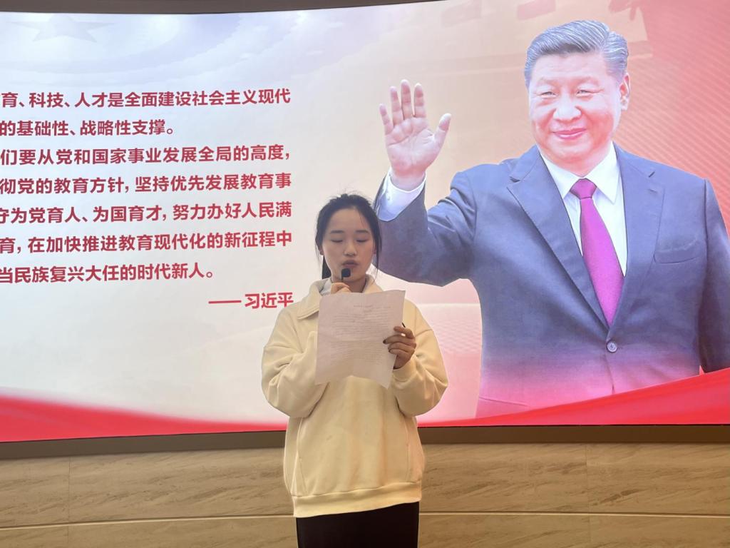 接着,学生党建中心主任刘文成老师对新发展党员提出热切期盼。她希望全体党员要对党要自觉加强党性修养,对党忠诚,牢记使命,勇于担当,在平凡的学习和生活中践行初心使命,为党的事业不懈奋斗,以实际行动诠释共产党员的信念和担当,走好“第一方阵”,双向奔赴;同时强调,要胸怀国之大者,认真履行党员职责,加强党性锻炼,坚定理想信念。