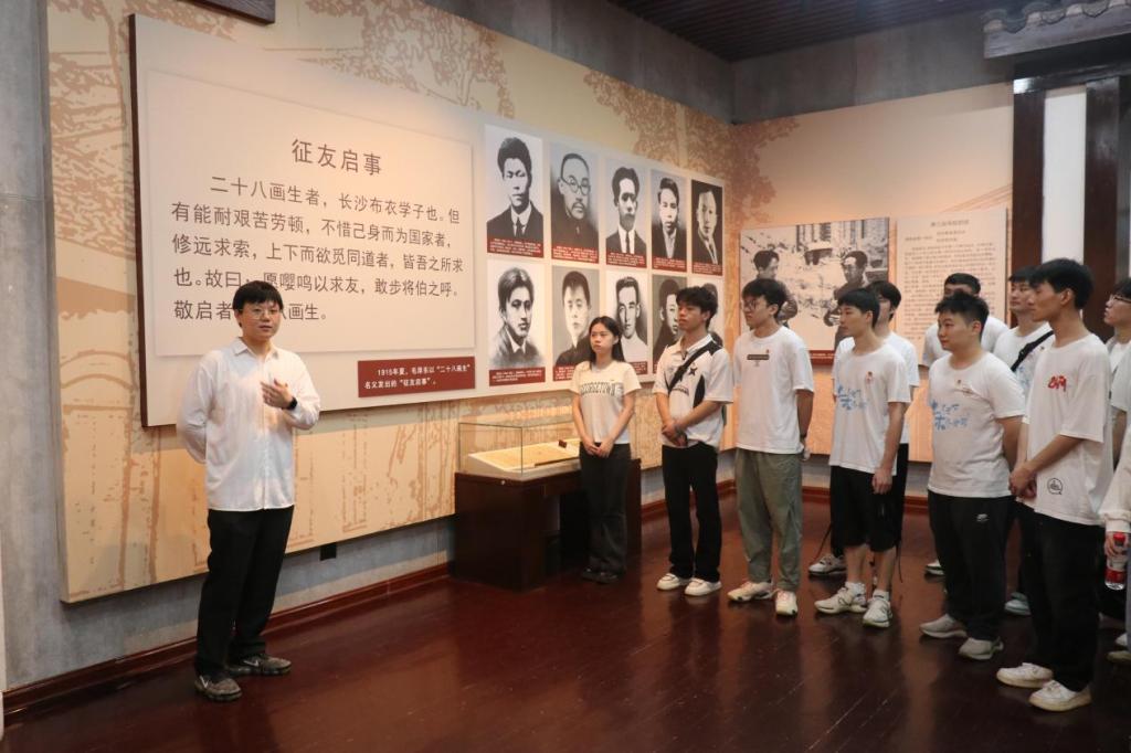 同学们仔细观看,认真听讲,时而驻足凝视,时而提出问题,在青年毛泽东的故事中领悟青春力量。这不仅使师生们对青年毛泽东的求学生涯有了更深刻的认识,也让他们对青年毛泽东的革命精神和崇高信仰有了更直观的感受。“每一处红色纪念地,每一处爱国主义教育基地,都是一处思想高地、精神殿堂。作为博士理论宣讲团的一员,我们的初心就是把每座精神高地,按照基地所承载的老一辈革命家的革命精神,把它更好地诠释和宣传”博士理论宣讲团成员黄文恺如是说道。“党课教育引领不是教师的‘独角戏’,而是师生情感共鸣的‘双边对话’,这个共鸣产生的最佳地方就是一个个红色基地。学院近年来探索行走的思政课--红色桥梁寻访,走着上的党课--红色基地沉浸式学习等形式,做到把教室小课堂同社会大课堂结合起来,把理论和实践结合起来,目的就是要引导青年大学生去切身体验、去辩证思考,希望能更有效引导同学们打好精神底色、夯实人生根基”学院副院长张永杰表示。