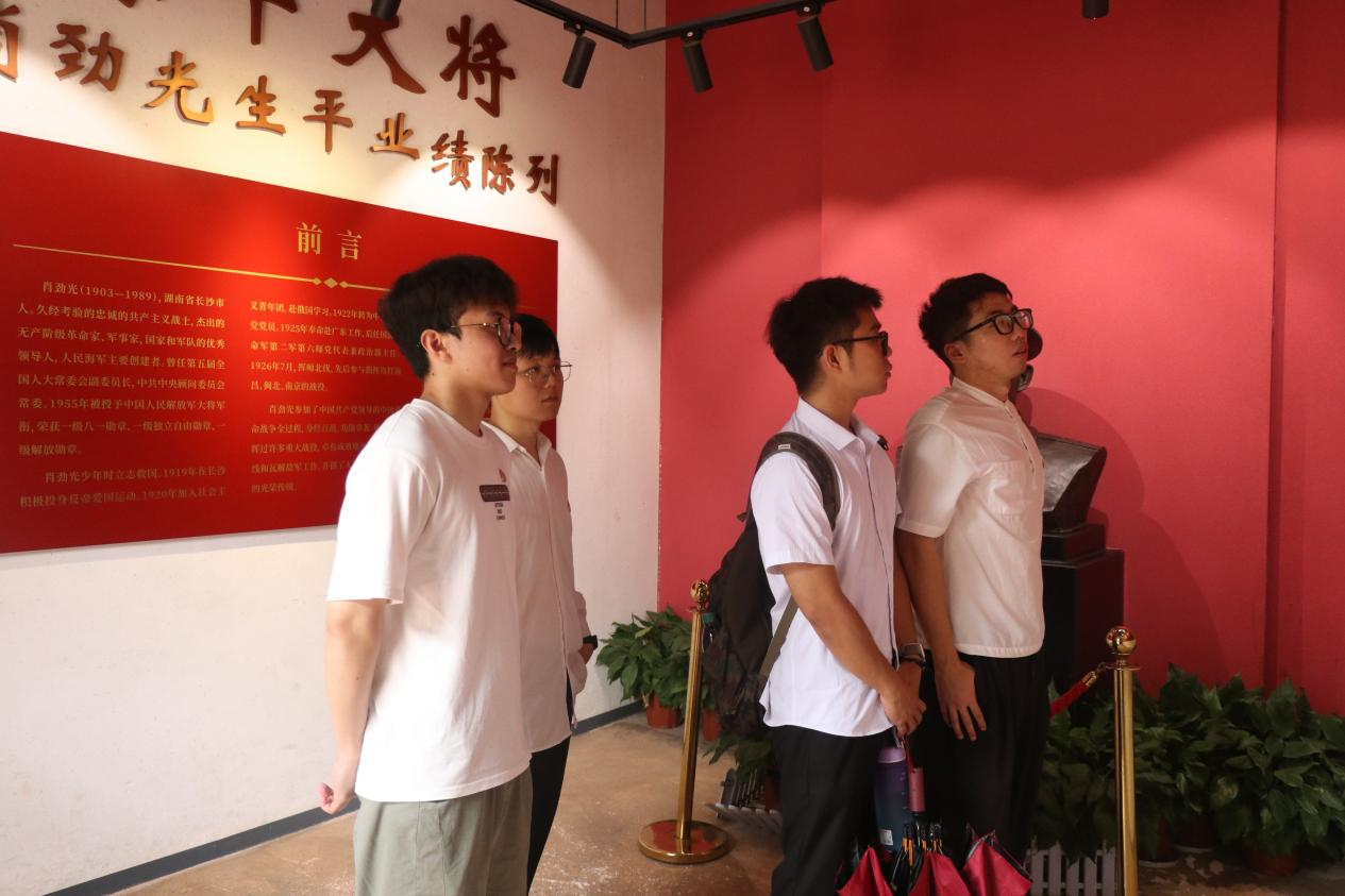 肖劲光故居,这座见证了无数历史风云的湖南民居,以其简朴而庄重的建筑风格吸引了每一位到访者的目光。师生们首先参观了故居内的陈列展览,通过丰富的历史照片、文献资料和实物展品,详细了解了肖劲光同志在抗日战争和解放战争期间的重要贡献与英勇事迹。每一个展厅都记录着肖劲光同志在不同历史阶段的关键角色和卓越成就,生动地展现了他的坚定信仰和爱国情怀。师生们认真聆听讲解,仔细观看展品,深刻感受到先辈们为了国家和民族作出的巨大牺牲和不懈努力。