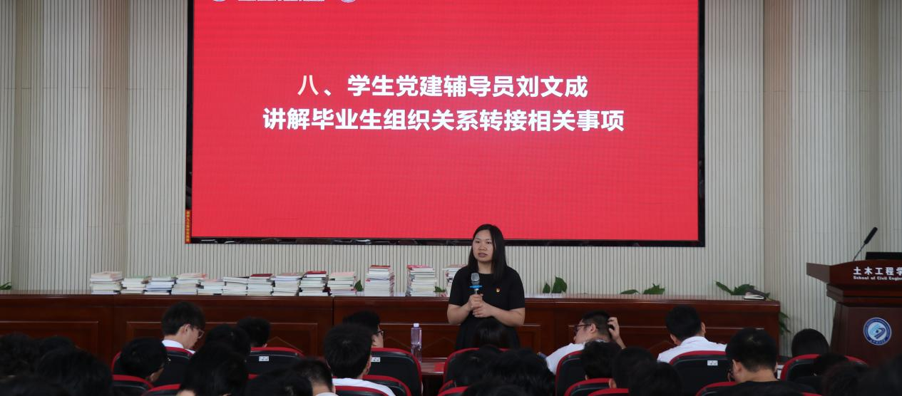6月7日上午,土木工程学院于工科二号楼B302开展2024届毕业生党员大会。土木学院党委副书记黄阿明、学生党建辅导员刘文成及2024届毕业生党员160余人参加会议。
