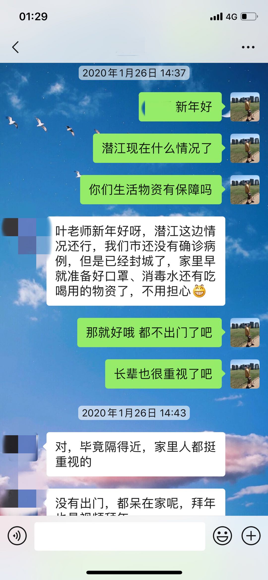 “好的,已查收,谢谢学校和老师的关心。祝老师身体健康,万事胜意。愿疫尽,国泰民安!”