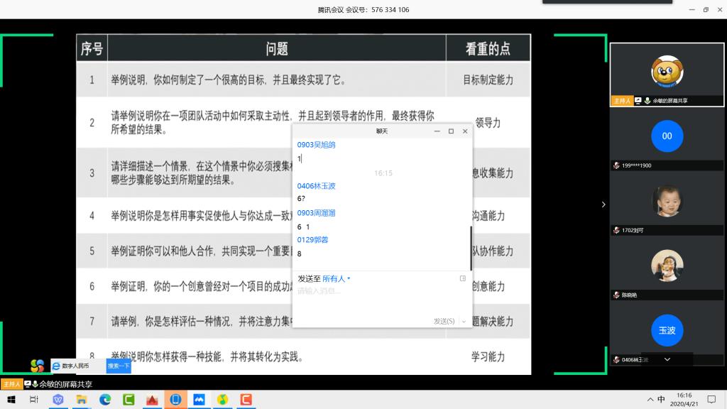 4月21日下午4点,我院“菁帼”女生素质提升训练营第八讲线上开讲。余敏老师在讲课中干货满满,为学员带来一个充实而有趣的课堂,获得学员们的一致好评。