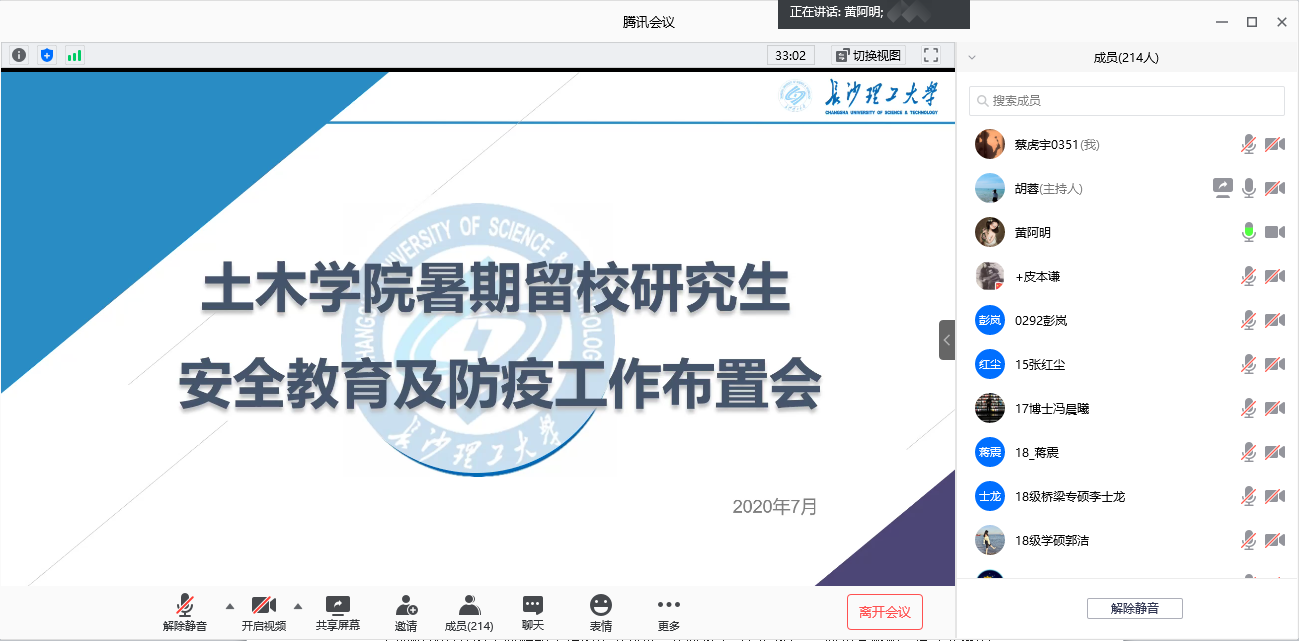 7月3日上午,土木工程学院暑期留校研究生安全教育及防疫工作布置会在腾讯会议平台线上召开,学院党委副书记(代理)黄阿明出席会议,240名余暑假留校研究生参加了本次会议,会议由研究生辅导员胡蓉主持。