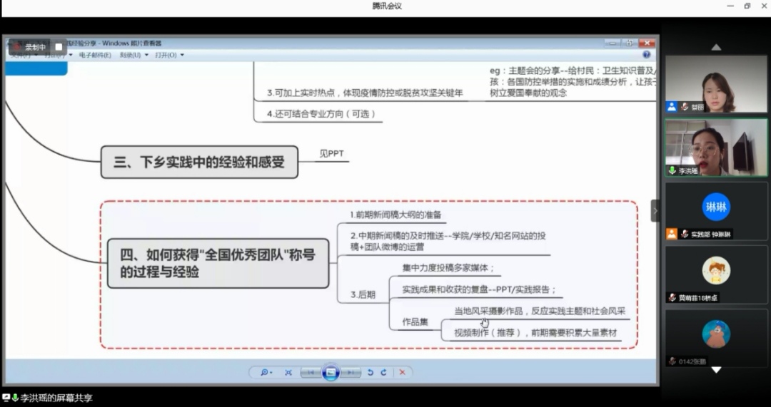 大会伊始,钟琳琳向大家报告了此次学院暑期实践实践团队组组建情况并强调此次实践采取云组队、云调研、云访谈的新形式。随后,优秀实践代表进行经验分享,全国优秀团队”博士服务团代表李洪瑶向大家传授了社会实践经验,其突出强调了团队成员组建构成、实践宣传的重要作用及方法。挑战杯入围省赛项目团队代表刘耀凤、1803班郁晨羽、城轨1701班戴峻分别从项目的商业价值及运行、环保项目的实践调研、企业岗位实践经验等方面进行了分享,给大家提供了有效的指导,并鼓励大家充分利用自身的专业优势和暑期实践这个平台提升自我综合素质和社会实践能力。