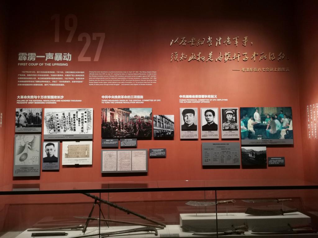 首先便是最动乱的民国时代的展区,组员们见到了新文化运动在长沙的兴起:建立新民学会、相应五四运动、开展驱张运动。随后,大家看见了:1920-1922年间,在毛泽东、蔡和森、何叔衡等人的组织下长沙共产党早期组织与中共湘区委员会的建立;1922-1923年间,开展的以长沙为中心的湘区工人运动;1925-1927年,中共领导的轰轰烈烈的长沙农民运动。并且有大量相应时期的历史文物,如报刊,革命志士的书信、武器、生活用品等被展览了出来。