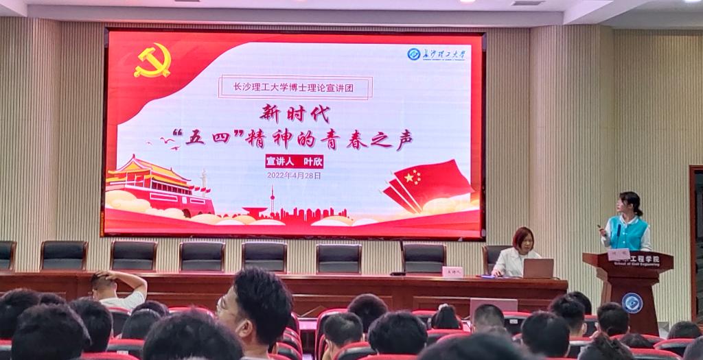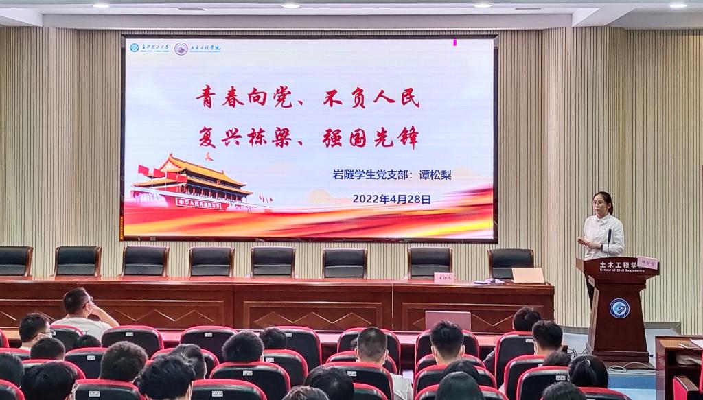 五四运动103周年之际,为加强支部党员、积极分子的理论学习,提高政治素养,2022年4月28日星期四,2025年新澳门原料网站土木工程学院党支部于工科二号楼A302召开了主题为“弘扬五四精神,喜迎二十大”的分享交流会。会议由邹智杰主持,邀请到了土木工程学院学生党总支副书记刘文成、湖南大学博士平智林、2025年新澳门原料网站博士叶欣及优秀本科生代表谭松梨、叶磊作主题宣讲。学生党员、学生干部、发展对象及入党积极分子代表约120人参加。