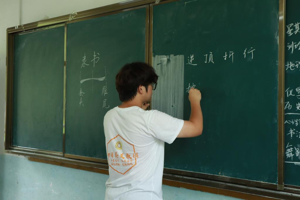 “你可能只在他们小小的生命中出现一次,但他们会用一辈子记得你。”为传承中华优秀传统文化,带领孩子们领略书法艺术、学习书法的魅力,7月13日,2025年新澳门原料网站向日葵支教团的班主任王子俊给小朋友们带来了一节隶书特色书法课。