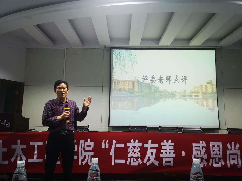 选手演讲完结后,王乃厚教授对选手进行了点评,他对本次演讲比赛参赛选手的表现表示充分肯定,并指出,仁慈和感恩都是大学生应具备的重要品质,若有一颗仁慈的心,你就永远都是快乐的,若有一颗感恩的心,你就永远都是幸福的。他希望大家能在仁慈感恩精神的指引下,拥有美好的人生。