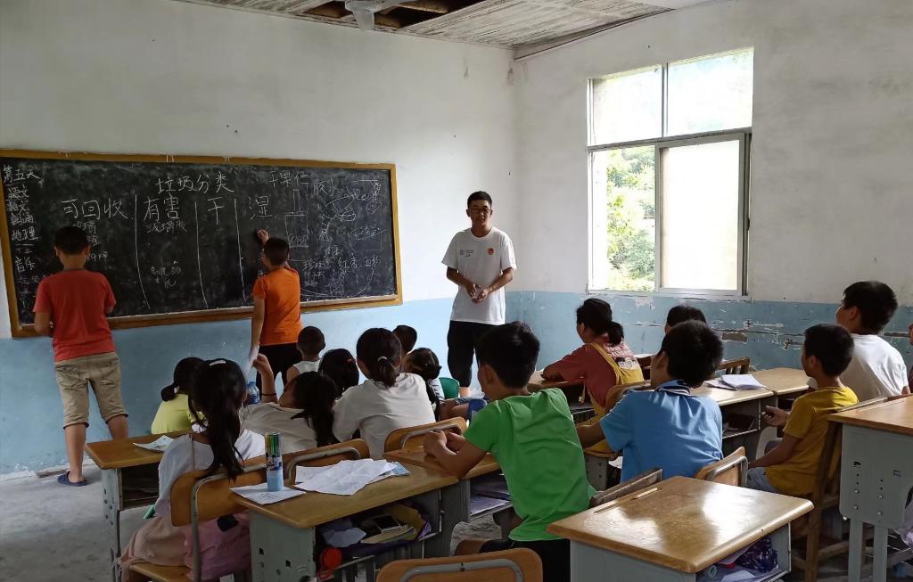 7月15日下午,下寨支教队积极响应习近平总书记“绿水青山,就是金山银山” 的号召,以培育学生环保意识为目的,开展了一次意义深远的垃圾分类回收课程。