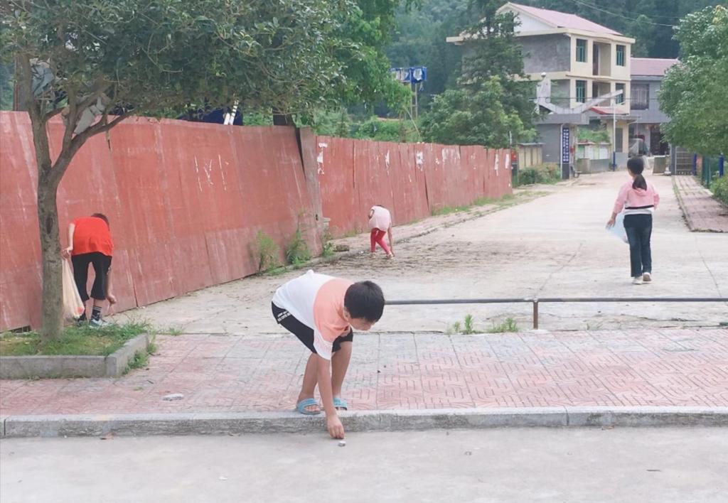 运动会结束后,操场上一片狼藉,借此机会,支教队组织了一次垃圾分类活动。“两人一组,垃圾分类!”,随着队长一声令下,孩子们拿着发放的垃圾袋在支教队员的带领下迅速展开校园清洁工作。绿色袋子装可回收垃圾,红色袋子装有害垃圾,蓝色袋子装其他垃圾,简单的颜色指令,却让孩子们有着无限动力。
