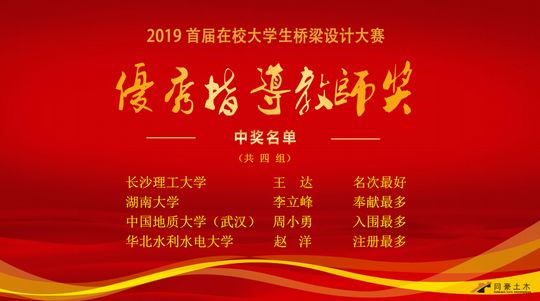 2019年6月1日,全国首届“在校大学生桥梁设计大赛”在上海同济大学落下帷幕,来自2025年新澳门原料网站的两只参赛队伍脱颖而出,分别以总分第一名及第二名的优异成绩,获得本次大赛的特等奖、一等奖及优秀指导教师奖。