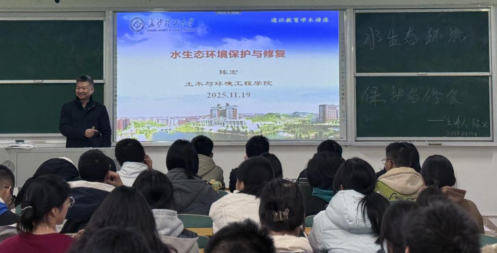 11月19日,土木学院在云塘校区文科楼A408开展了主题为“水生态环境保护与修复”的通识教育讲座,特邀陈宏教授主讲,80余名本科生参加。