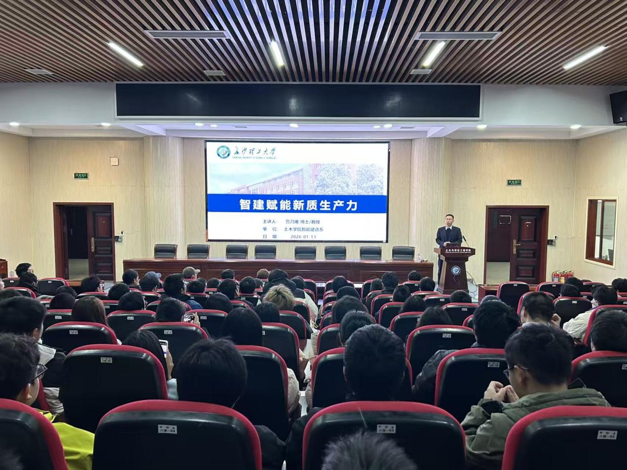 为深化学生对专业前沿技术的认知,激发学习兴趣与创新意识,1月13日晚上,土木学院在工二B302开展主题为“智建赋能新质生产力”的通识教育讲座,智能建造系主任鲁乃唯应邀主讲,180余名本科生参加讲座。