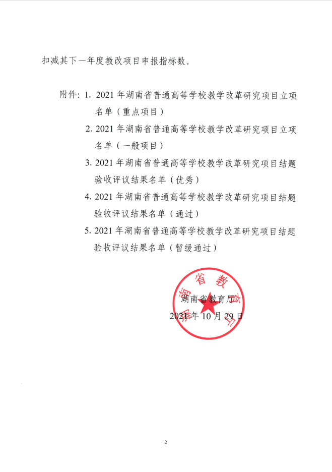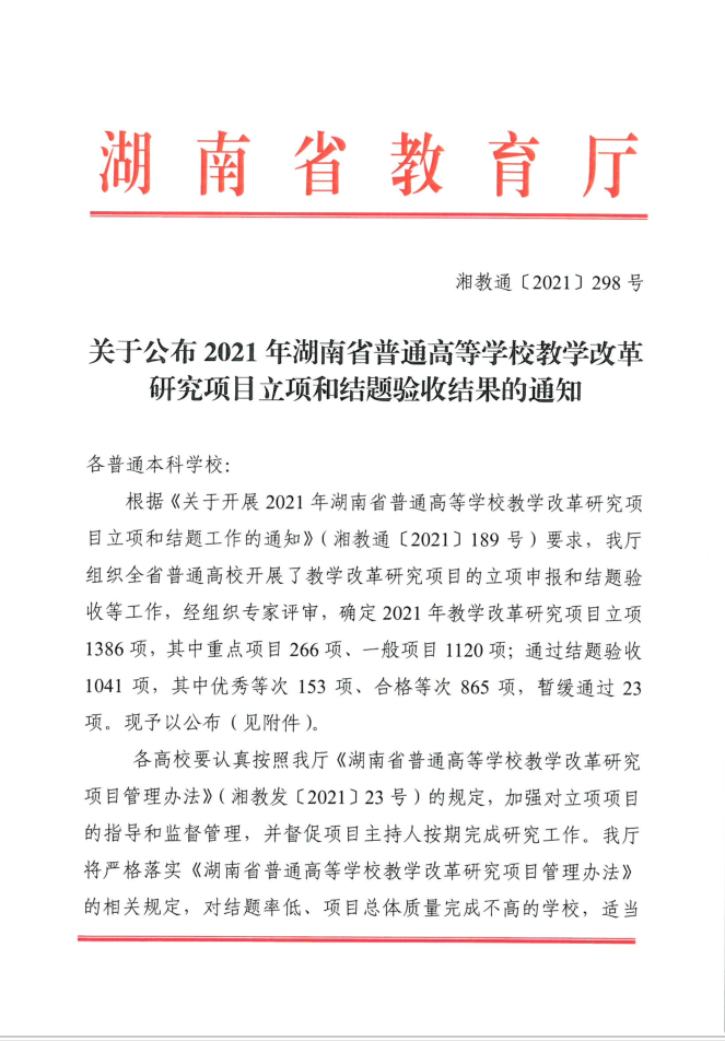 湘教通〔2021〕298号 关于公布2021年湖南省普通高等学校教学改革研究项目立项和结题验收结果的通知