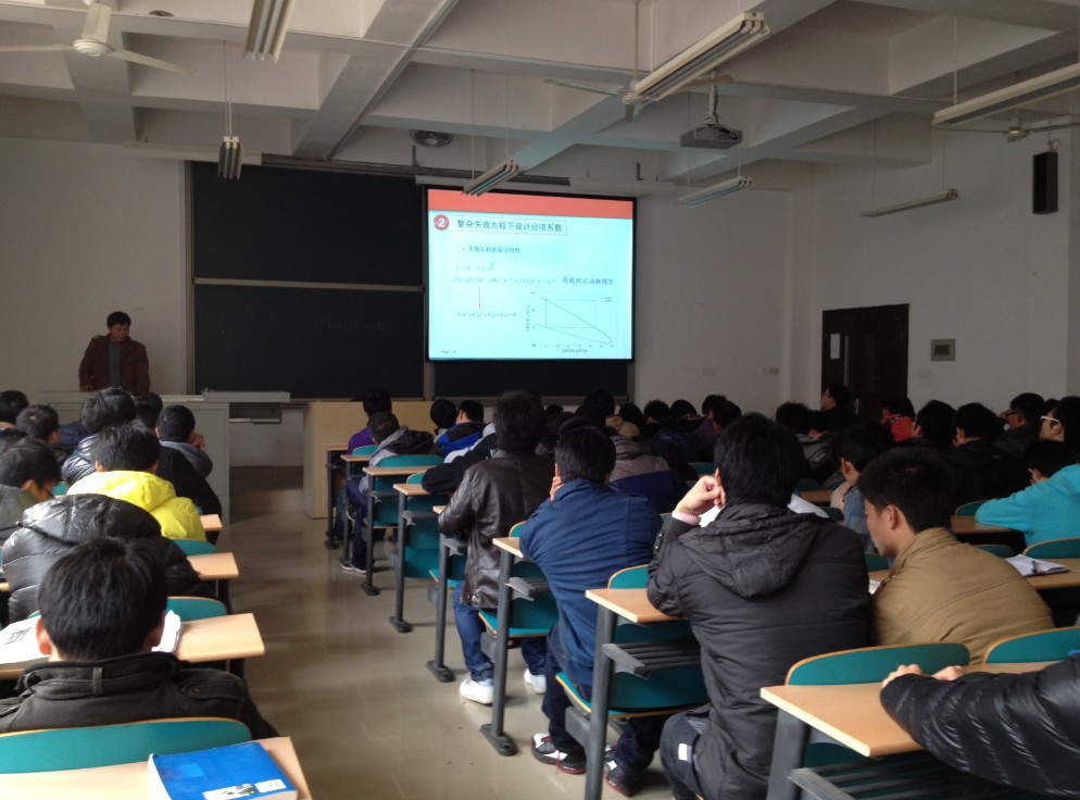11月27日下午两点,蒋友宝副教授在工科三号楼A-208做客土建学院拓新论坛,为学生举办了《复杂结构失效方程模拟与可靠性设计》专题学术讲座,建筑工程2010、2011、2012级学生听取了报告。