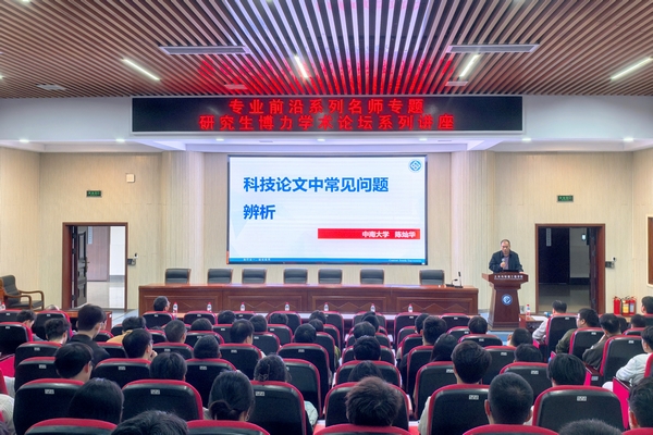 10月14日,由我院主办的土木工程专业前沿系列名师专题暨研究生博力学术论坛系列讲座在工科二号楼继续举行,《中南大学学报(自然科学版)》执行副主编、编辑部主任陈灿华应邀作题为“科技论文中常见问题辨析”的学术报告。讲座由学院副院长蒋友宝主持,教师及研究生共150余人参加。