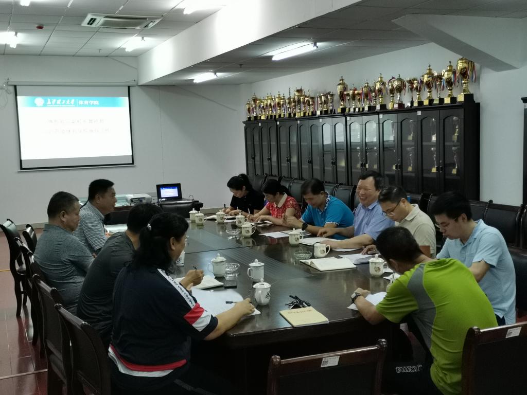 张恳首先对体育学院近几年来学科建设发展情况做了简要介绍,对学校给予体育学院学科建设发展的关心和帮助表示衷心的感谢!潘红玲重点介绍了体育学院近几年科研发展情况,总结了2018年以来在科研参与人数、省级课题立项、国社项目新突破等方面所取得的进步,分析了学院科研工作中存在的主要问题,并就如何提高我院科研水平提出了具体思路。社科处、科研部领导先后发言,给体育学院科研发展提出了宝贵意见。