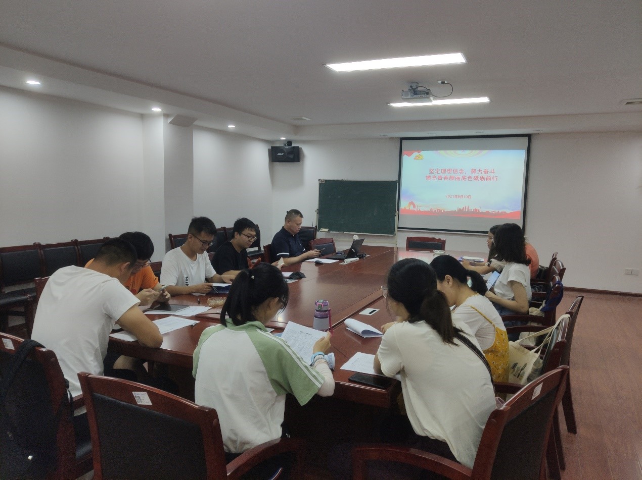 2021年9月10日上午9:00,体育学院2021级研究生“第一堂党课”在金盆岭体育馆104会议室开讲。本次党课主题为《坚定理想信念,努力奋斗,擦亮青春靓丽底色砥砺前行》,由体育学院党总支书记章罗庚教授主讲,学院2021级研究生班主任霍嘉升主持,2021级全体研究生参加。