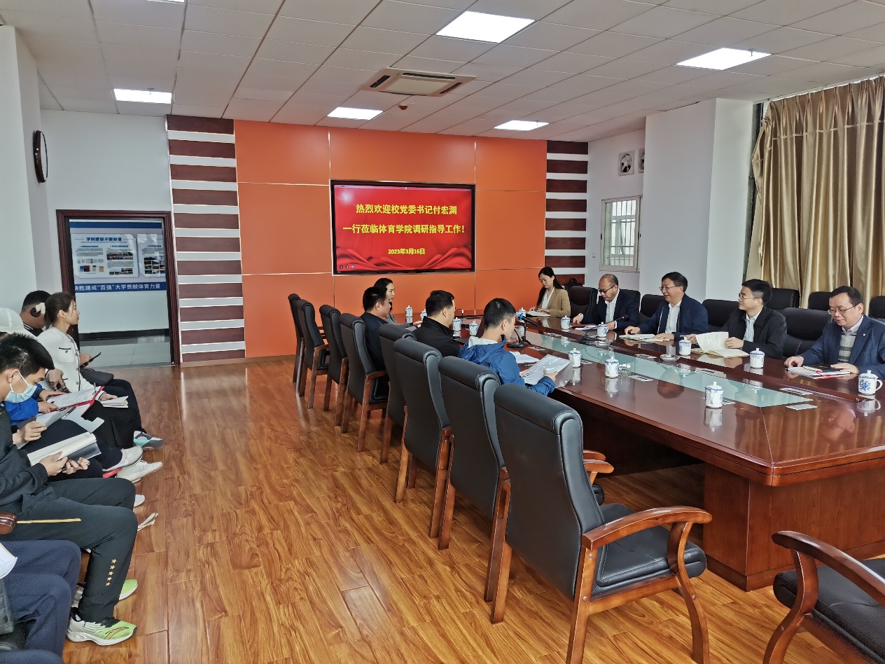 月16日上午,校党委书记付宏渊带领校党政办、组织部、人事处、教务处、科研部等职能部门负责人一行莅临体育学院调研指导工作。学院全体领导班子成员、教研室、中心、办公室负责人、青年教师参加调研座谈。