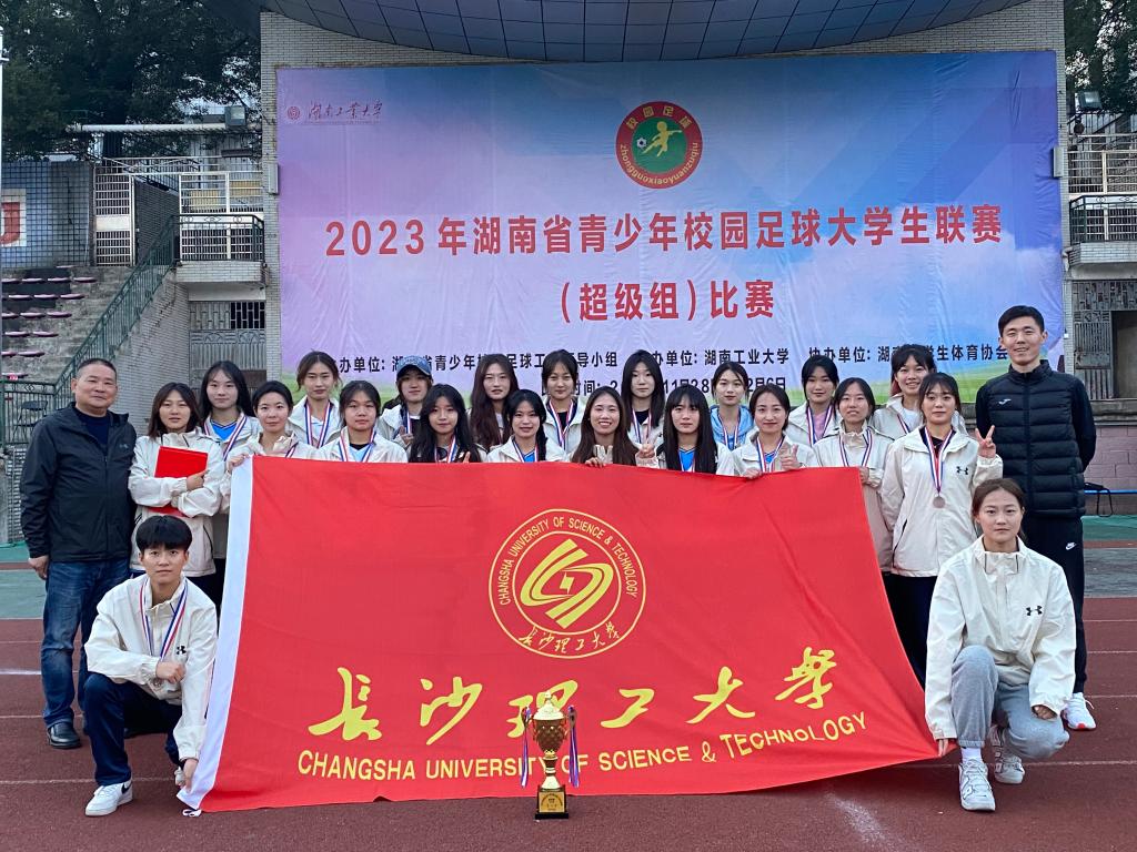 2023年12月5日下午,在湖南省青少年校园足球大学生联赛决赛日当天,我校女子足球队5:0大胜湖南科技大学队,取得了近年来省级比赛高校女子足球队最好成绩。此次校园足球比赛,我校女子足球队在领队何志敏、主教练韦世海的带领下共派出21名队员参赛。经过6天的激烈比拼,最终取得女子超级组第三的优异成绩,创近年来我校女足参加该项赛事最好成绩。
