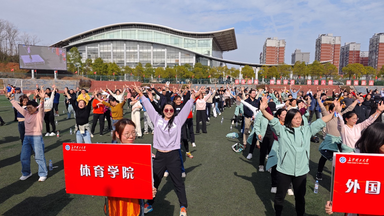 活动开始前,全体教职工在体育学院张歌林、龚慧敏两位年轻教师带领下齐跳健身操《健康到到令》进行热身,现场气氛欢快热烈。随着曹一家校长的一声枪响,健步走活动正式开始。活动中,青年教师精心编排的热身操活力拉满,教职工矫健自信的步伐铿锵有力,成为校园一道靓丽的“风景线”。