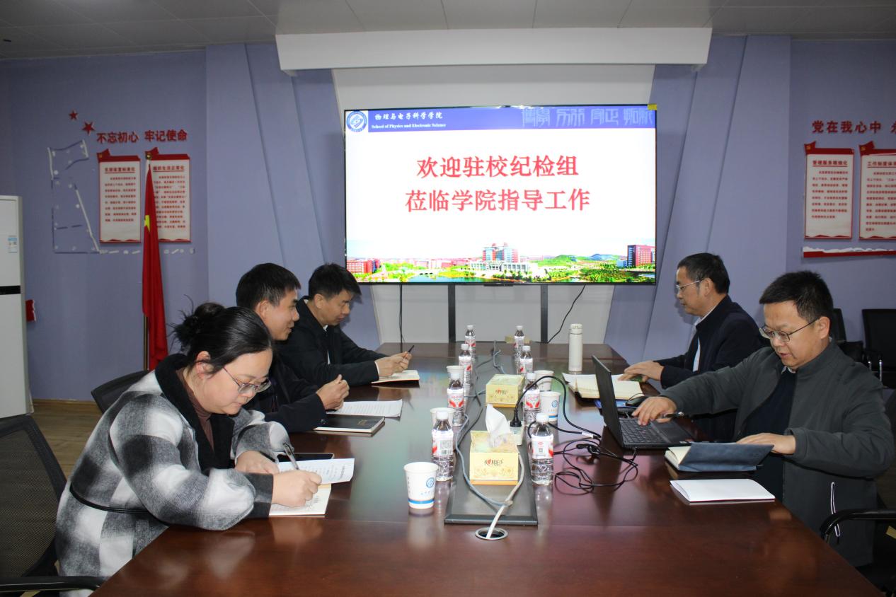124午,驻校纪检组副组长校纪委副书记王煜坤,综合室主任周常国,第一纪检监察室科长肖凤到物电学院检查与指导纪委工作,院党委书记张国强纪委书记范志强出席会议。